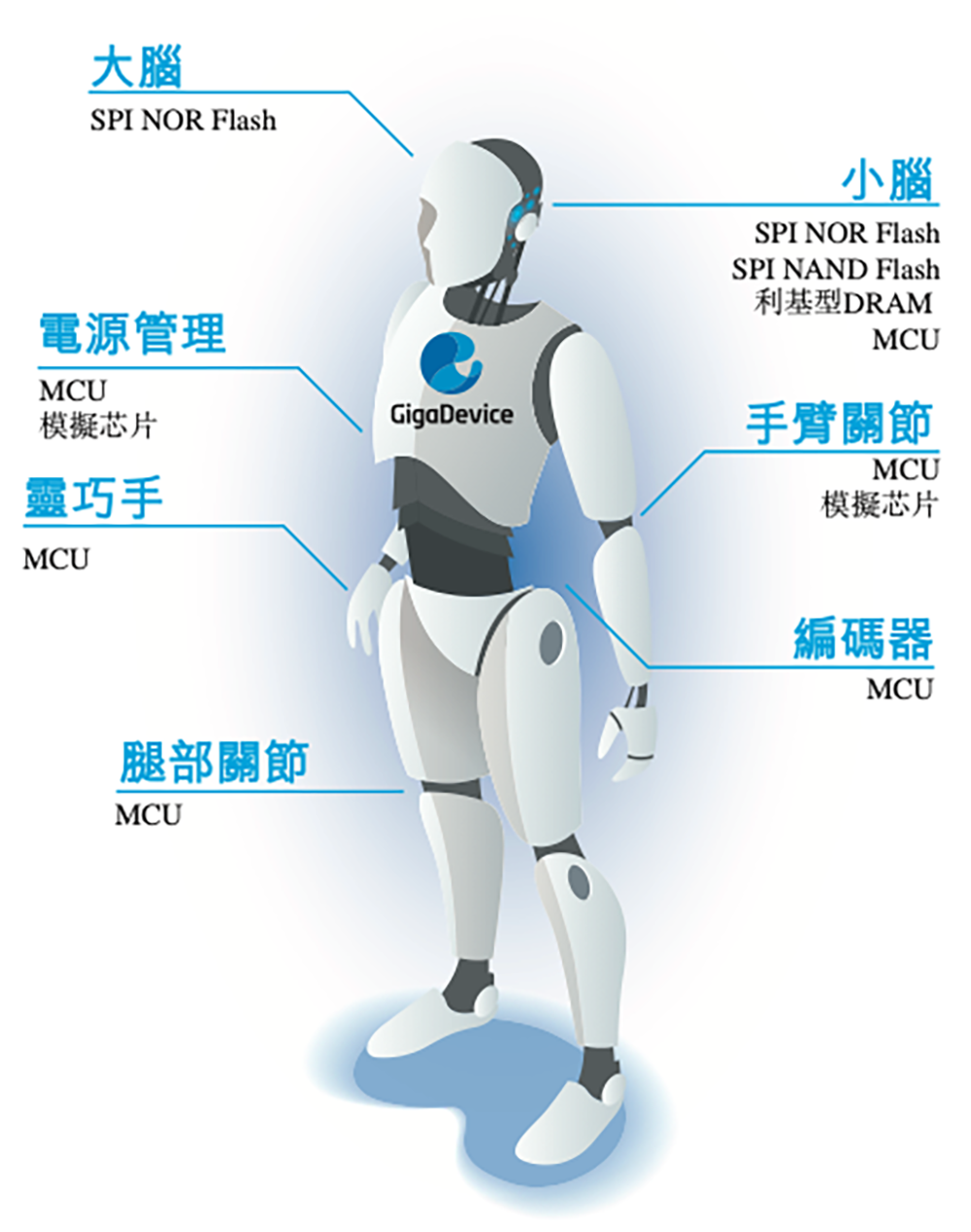 凭借多元化的产品组合及「感存算控连」生态协同解决方案的全面生态系统,兆易创新能够在人形机器人、电动汽车、智能可穿戴设备等行业提供综合解决方案。