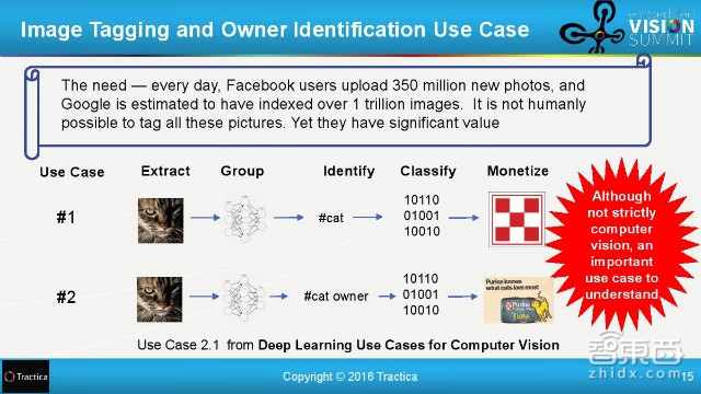 先来看一下市场需求。Facebook上的用户每天将3亿5千万张新照片传上网,谷歌被预测其拥有的可被索引的图片数量超过一万亿张。这些图像在网上都有其价值,但这样的工程量不是人工可以解决的。