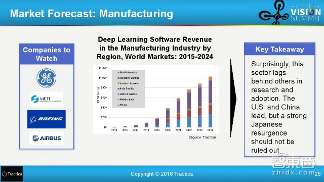 涉及到的大公司是通用,日本的METI,波音和Airbus,到2024年,深度学习在全球制造业的软件收入将超过10亿美元。 会CV的AI在这一方向上的研究和应用还很少,但是中美以及强劲复苏的日本都会在这方面发力。