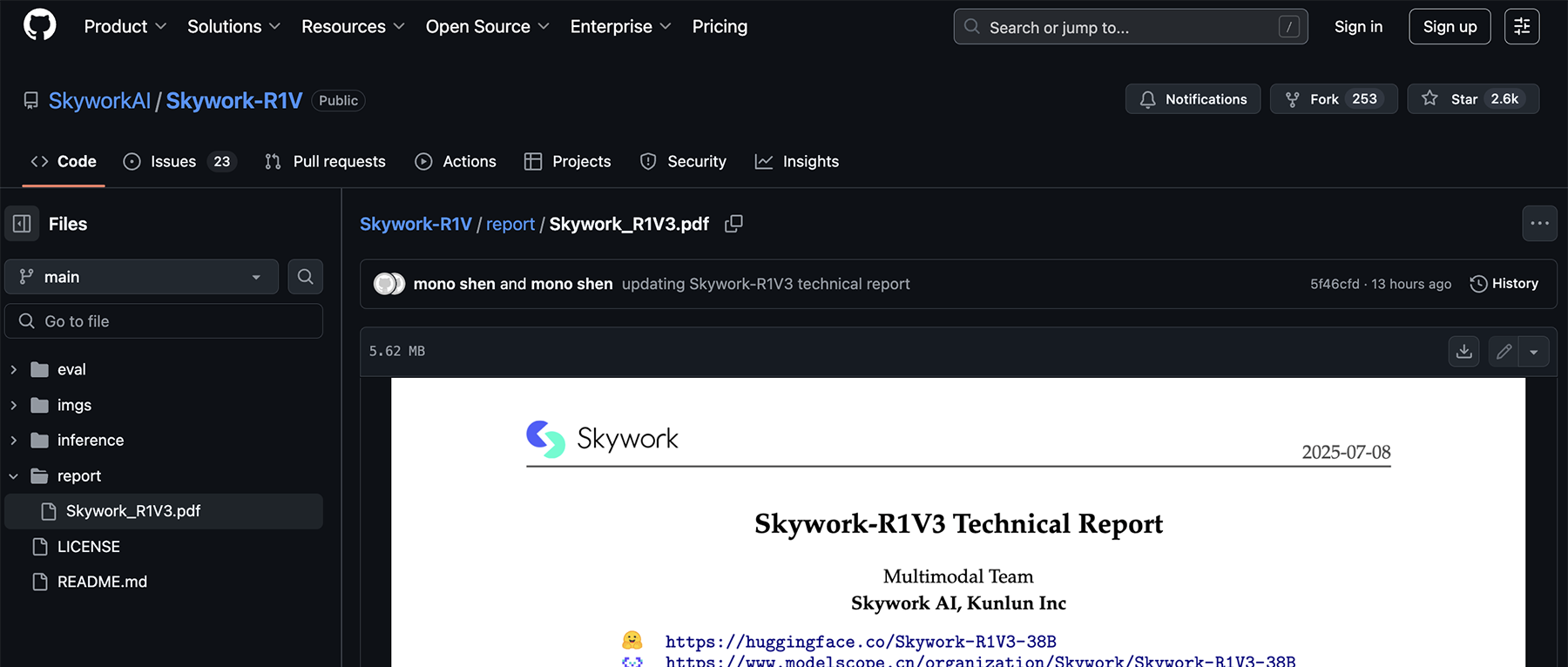 技术报告:https://github.com/SkyworkAI/Skywork-R1V/blob/main/Skywork_R1V3.pdf