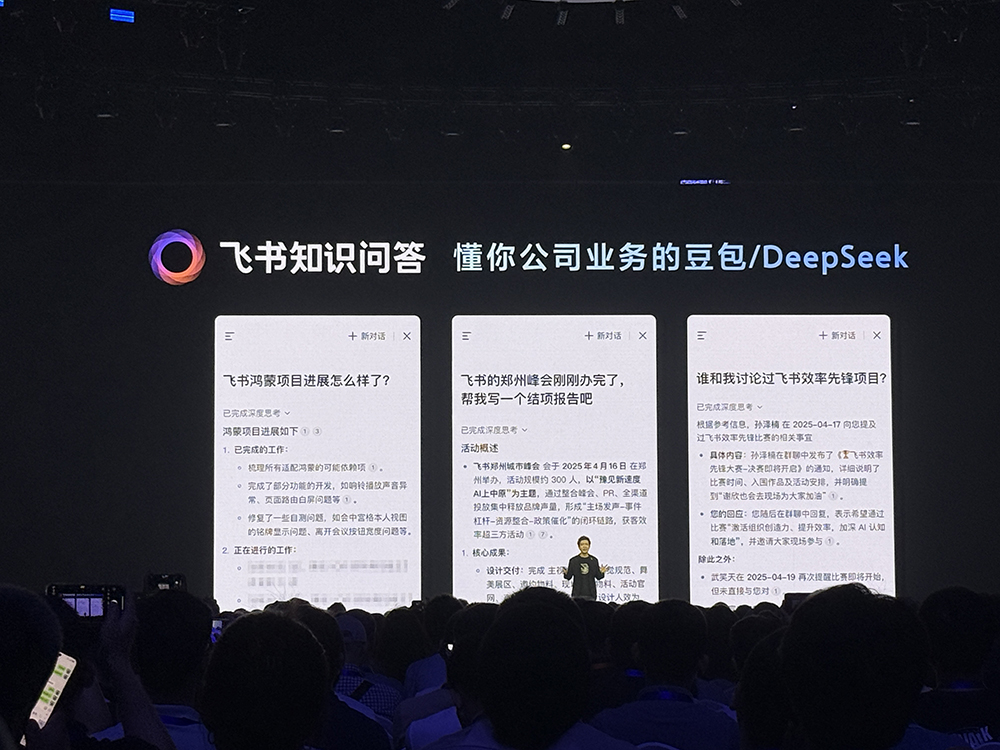 谢欣说,飞书知识问答专为海量数据处理场景设计优化,像一个“懂你公司知识的豆包/DeepSeek”,是“第一个,目前也是唯一一个,支持这种海量数据规模的AI问答”。