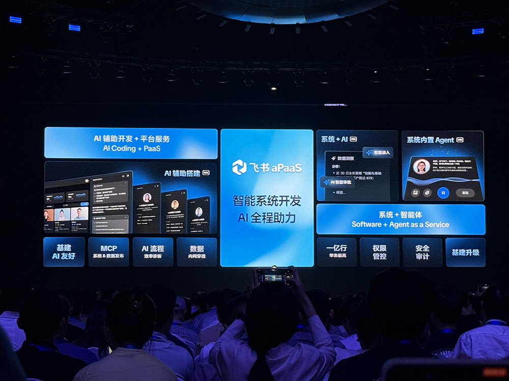 “AI正带来全新开发范式,软件范式上,AI Coding加PaaS,将实现效率、稳定、复用间的最优解。”周洲称,飞书aPaaS与飞书aily已成为先进数字化团队的共同选择。