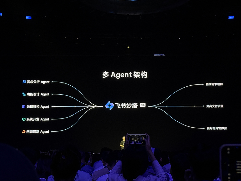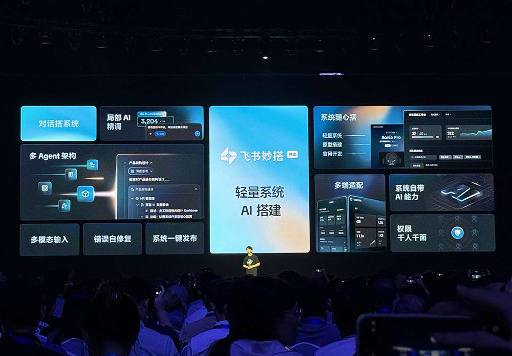飞书开发套件负责人周洲说,它不仅包含了多款适配不同场景的AI开发工具,也凝聚了飞书对未来软件和开发范式的思考,将为企业带来3类全新生产力:将业务需求快速落地成轻量系统、AI加速核心系统开发、用Agent提升员工生产力。