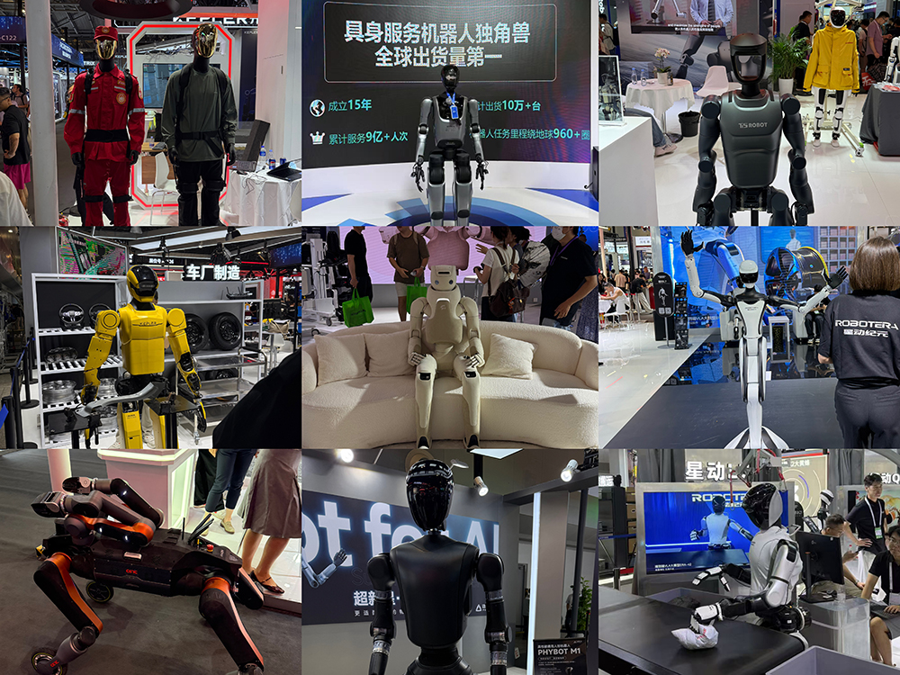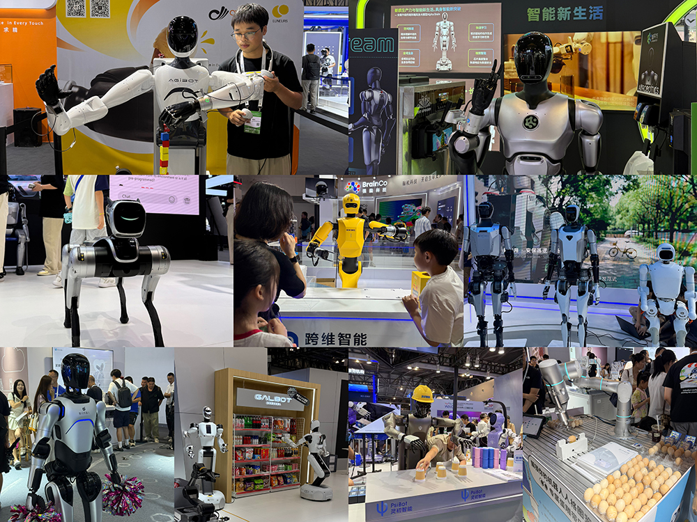 人形机器人中,宇树科技格斗机器人拳击演示被围得水泄不通,非夕科技机器人向观众演示精细“蛋雕”,灵初智能机器人秀赛博打麻将,魔法原子首秀双足人形机器人和轮式机器狗,智平方机器人表演架子鼓,灵宝CASBOT W1挑战精准抓Labubu,星动纪元机器人360°旋转爆发跳和街舞炸场。