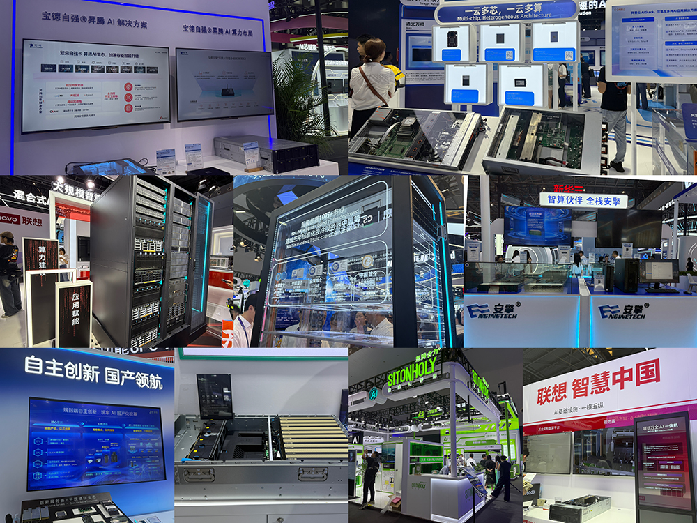 联想集团、中科曙光、浪潮、新华三、超聚变、中国电子、中兴、安擎、宝德计算、神州数码、国鑫、超云、超擎数智、朴赛、融科联创、思腾合力、软通动力、旭祥、亿万克、信维智算、华光宏、比特智算、英业达、星融元等展出了多款高性能AI服务器、超节点产品、AI交换机,展现本土系统集成能力。