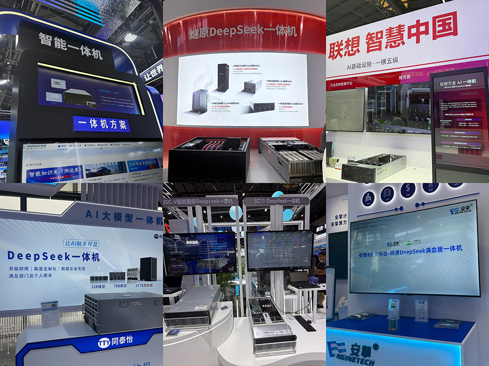 在展会上,联想、燧原科技、算能、同泰怡、澎峰科技、卓繁信息、中科弘云、安擎等多家企业展出了DeepSeek大模型一体机,实现大模型能力开箱即用、高度定制化。