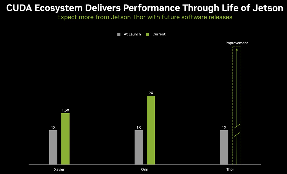 随着未来软件持续优化,Jetson Thor将实现更大幅度的性能提升。