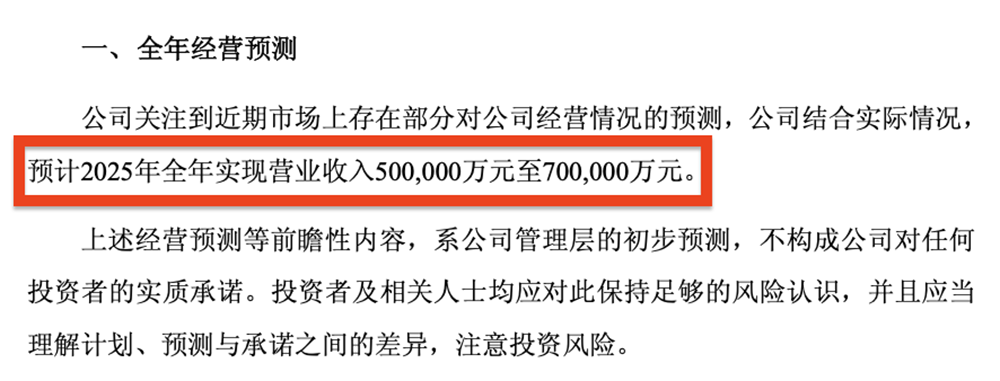 同日,该公司发布最新公告,预计2025年全年实现营收50亿元至70亿元。