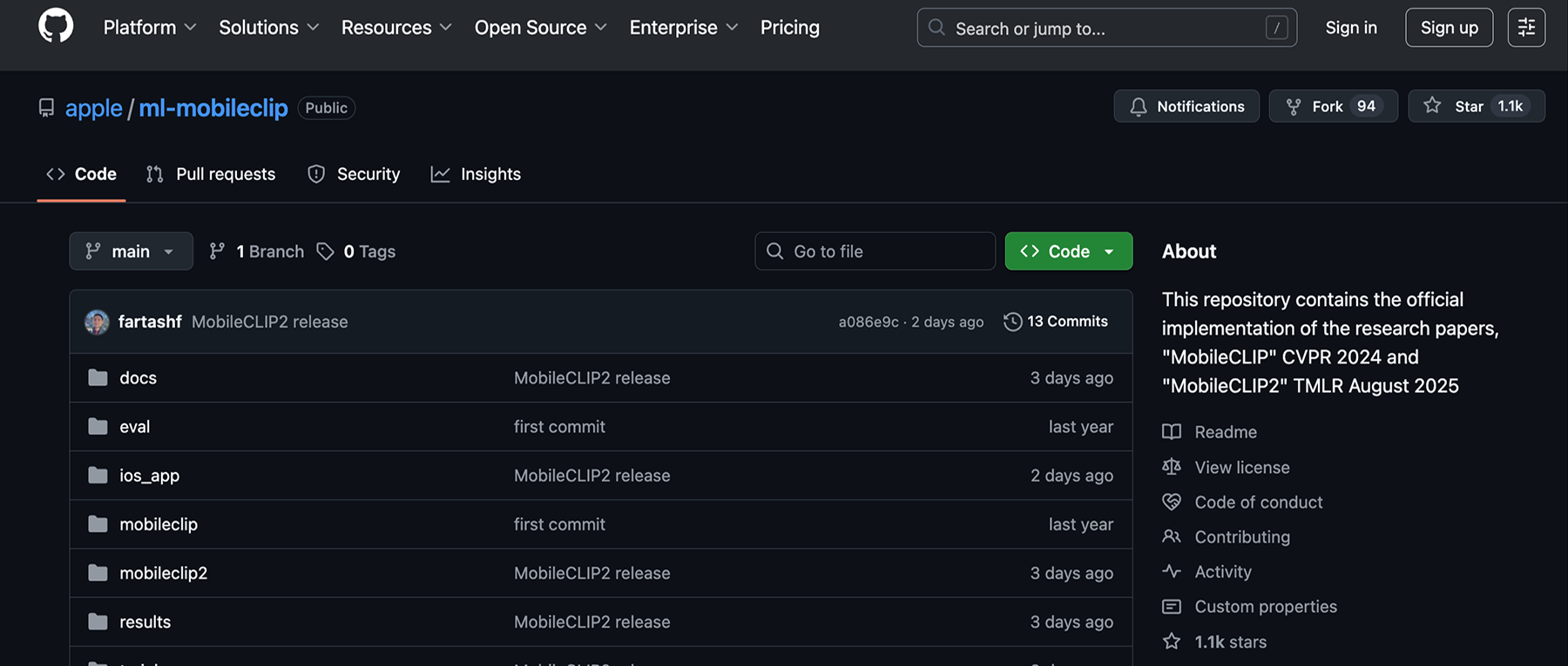 目前,MobileCLIP2所有模型变体的预训练权重均已公开,开发者可以直接部署和进行基准测试。苹果还发布了数据生成代码,开发者可以基于此使用分布式可扩展处理创建具有任意教师的新强化数据集。