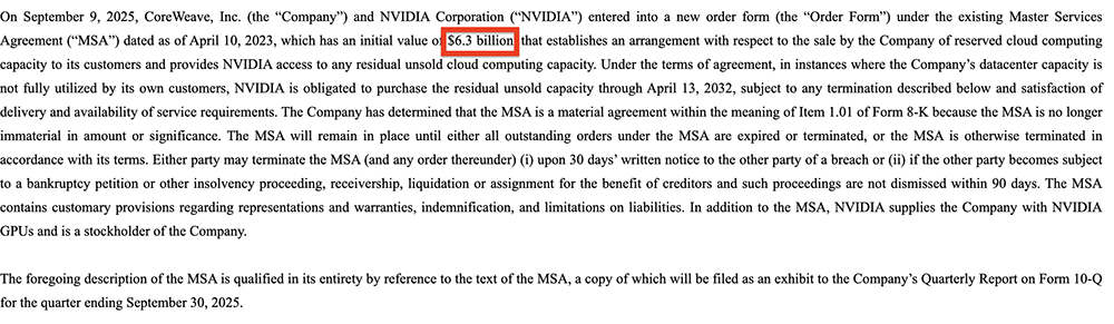 芯东西9月16日消息,据外媒报道,美国GPU云服务商CoreWeave周一发布公告,宣布已与美国AI计算巨头英伟达签署了价值63亿美元(约合人民币449亿元)的初始订单。