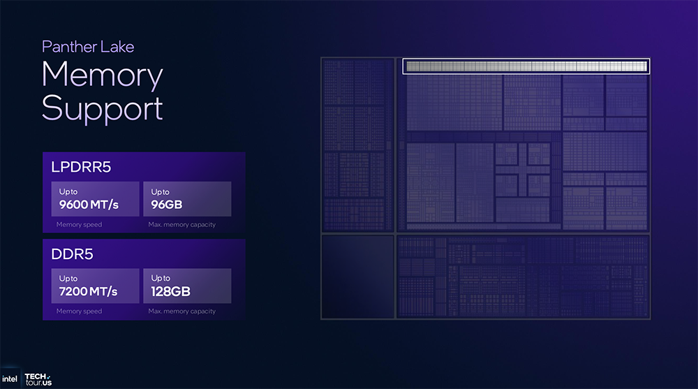 Panther Lake没有沿用Lunar Lake的内存封装(MoP),而是转用PCB内存设计,不依赖专用的预配置内存类型。