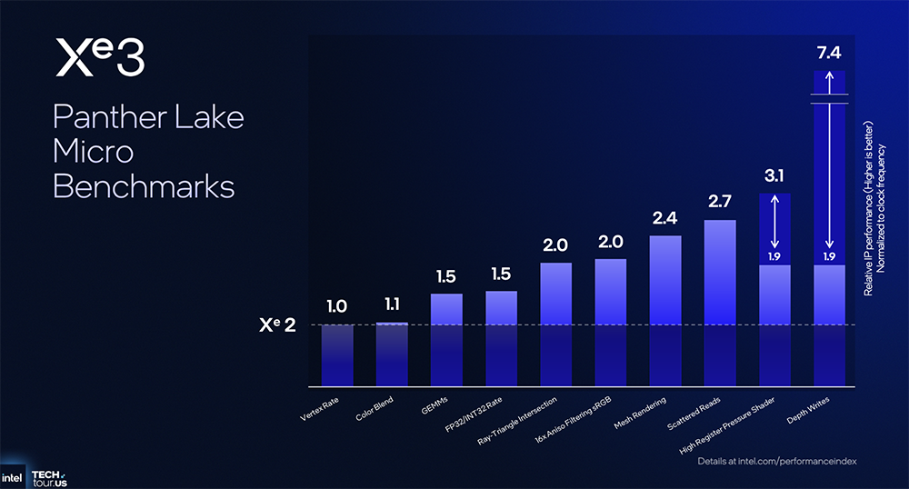英特尔展示了Panther Lake在一些微基准测试上的性能提升表现。