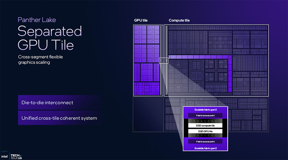 Panther Lake可扩展架构的核心元素是第二代可扩展Fabric,使英特尔可以在下一代CPU中混合搭配各种IP及其分区。