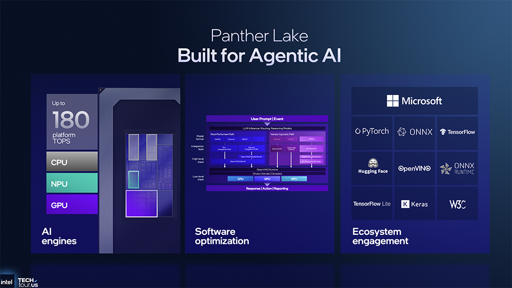 据英特尔分享,Panther Lake是专为Agentic AI设计的客户端SoC,总共AI算力有180TOPS。