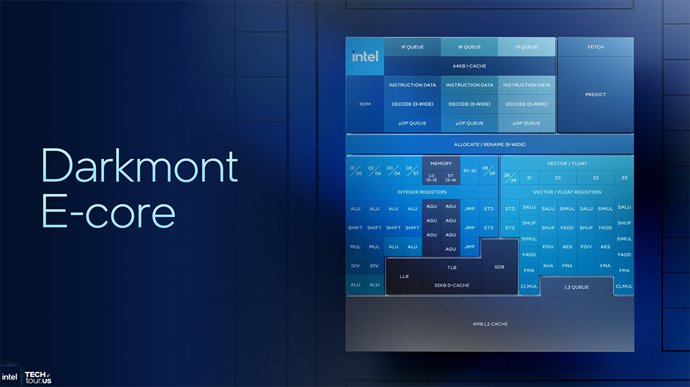 与同样基于E核的Sierra Forest相比,新一代Darkmont E核有以下特点: