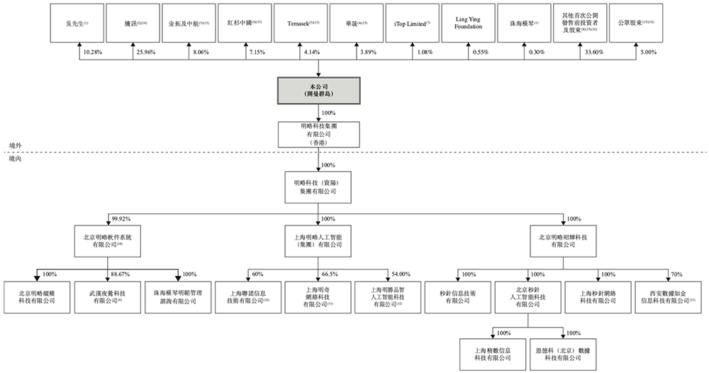 本次首次公开发售前,快手的全资附属公司Cosmic Blue Investments Limited持有明略科技已发行及发行在外股份总数约2.48%。