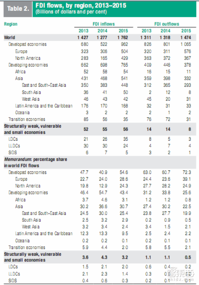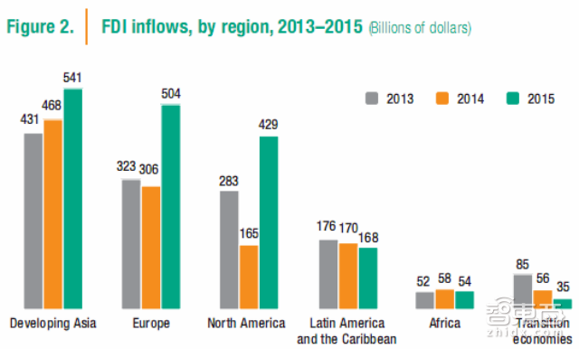 2015年全球FDI流入总体上升,但不同区域则表现出相当大的差距。