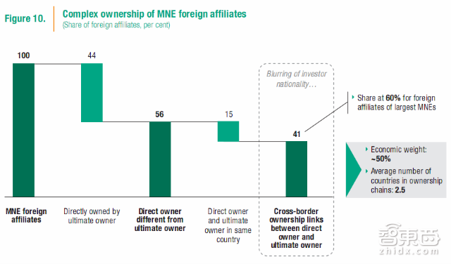 通常情况下,跨国公司都通过分层的网络结构对其所有权实体实现控制。超过40%的跨国公司国外分支都有相当复杂的所有权链条,这样的跨国体系平均都会涉及到3个行政辖区。这就意味着投资者和所有者的国籍在国外分支会变得越来越模糊。