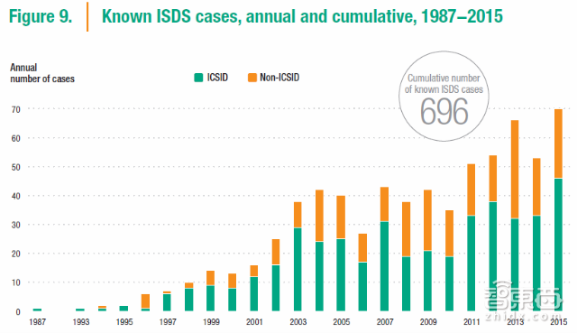 2015年,投资者根据IIA发起了70项“投资人—地主国争端处理机制”,Investor-StateDisputeSettlement,简称ISDS。这一数字是单年申请数量的最高纪录。