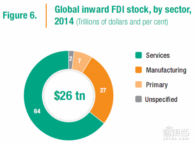 2015年跨境并购制造业金额创下历史新高,达到3880亿美元,超过了此前最高的2007年记录。这就使得制造业在2015年跨境并购的占比达到了50%以上。FDI的主要领域都受到了大宗商品价格疲软的影响,导致了资本支出计划的缩减以及再投资收益的大幅下降。在全球层面,采掘工业FDI的减少甚至对FDI的总额都产生了影响,尤其是在发展中国家。