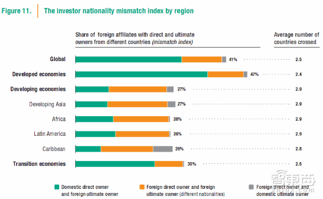 不匹配的情况涉及到了几乎一半的发达经济体跨国公司以及超过四分之一的发展中经济体跨国公司。大多数发生在发达国家的不匹配是由东道国多层次的所有权结构引起的,而在发展中国家,投资结果通过第三国过境的情况则更常见。