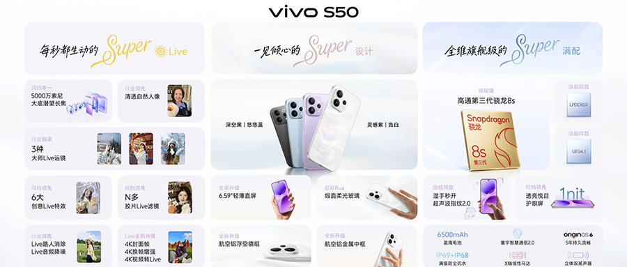 整体来看,vivo S50系列以“长焦Live神器”为核心,打通硬件、算法、拍摄与后期全链路,用户可以更简单地拍出兼具叙事感、氛围感与电影感的Live影片;其他配置上则尽量看齐旗舰机,提升S系列标准版体验,是vivo S系列的一次重要升级。