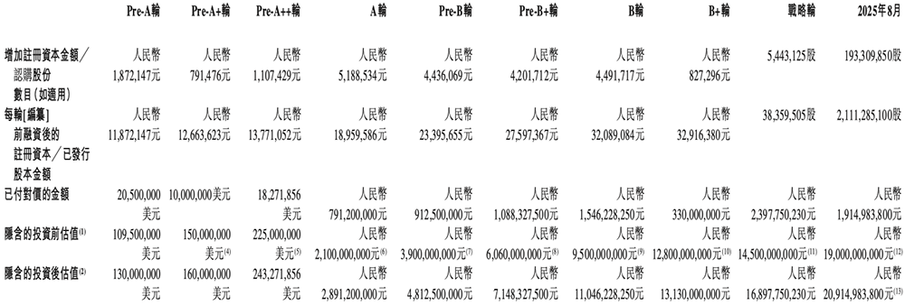 历经多轮融资,壁仞科技在2025年8月隐含的投资后估值达到209.15亿元。
