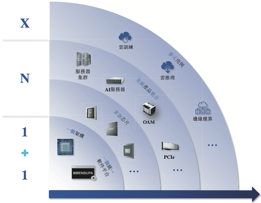 壁仞科技已实施高效的「1+1+N+X」平台战略,可概括为1个GPU架构+1个统一软件平台,衍生出多款芯片及全面产品组合。