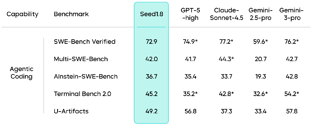 在Agentic Coding相关基准测试中,豆包1.8展现出了面向真实软件工程场景的稳定能力,表明其具备在真实开发环境中持续推进任务的Agent编程能力。