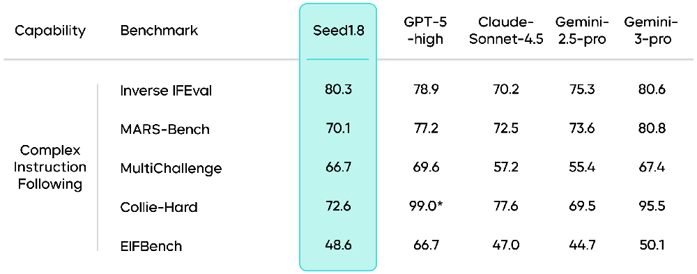 该模型在多项复杂指令基准中保持了与业界领先模型接近的表现。
