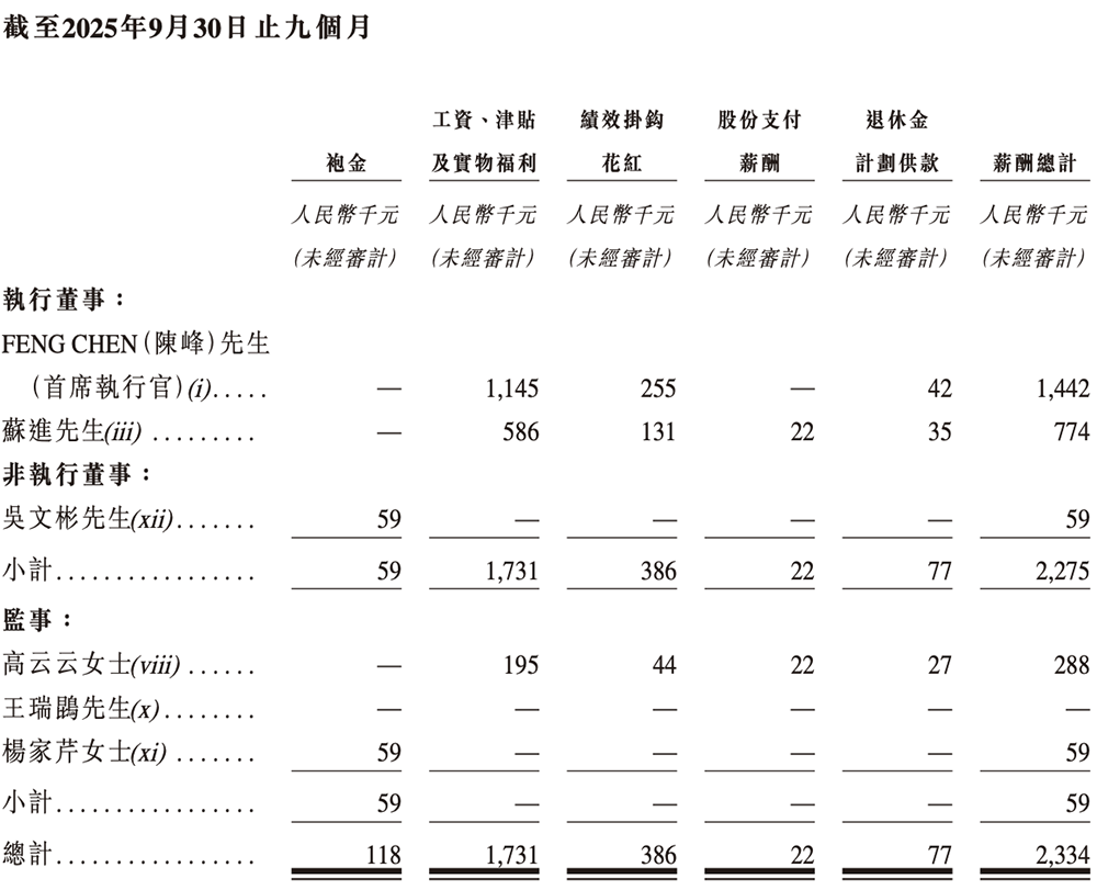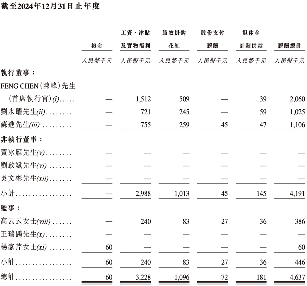 2024年、2025年1-6月,龙迅半导体的董事、最高行政人员及监事薪酬如下: