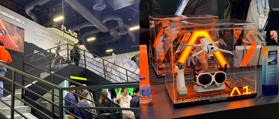 影石Insta360是一家来自深圳的智能影像公司,其主要产品是全景相机。这次他们带来了与第三方共同孵化的全景无人机产品影翎Antigravity A1,它是全球首款360°全景超高清无人机,还斩获CES无人机类最佳创意奖。其重量仅249克,拥有两颗8K全景镜头,能够捕捉无缝、无盲区的球形画面。
