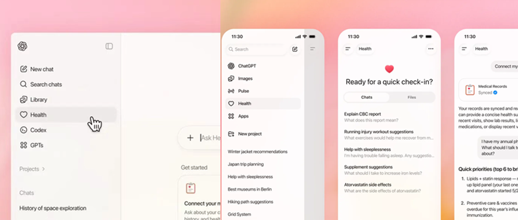 在医疗记录整合上,OpenAI宣布已与新加坡健康公司b.well建立合作关系。b.well与约220万家医疗服务提供商存在合作关系,本次与OpenAI的合作,b.well将为OpenAI用户上传医疗记录提供后端集成。