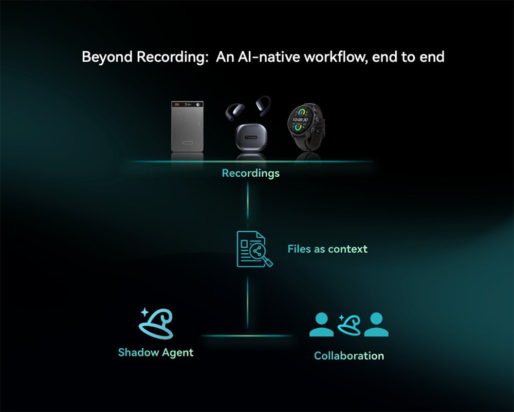 这些新品通过搭载核心引擎Shadow AI 2.0,形成“记录-文件化-执行-协作”闭环链路,驱动TicNote发展为知识管理与协作生态。