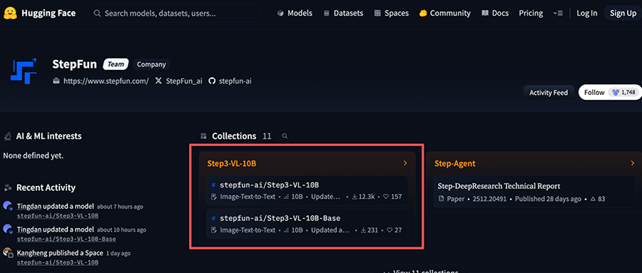 Hugging Face开源地址:https://huggingface.co/collections/stepfun-ai/step3-vl-10b