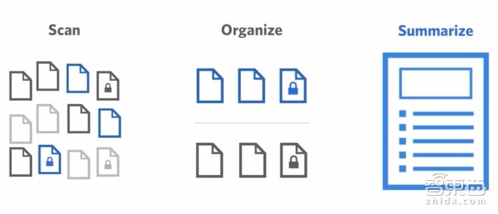 整个过程有三步:扫描文件(scan),组织内容(organize),合成信息(summarize)。