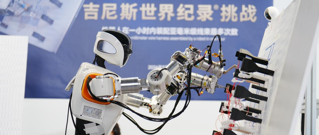 今年3月,A1机器人在1小时内完成亚毫米级柔性线束完整装配任务百余次,创下全新吉尼斯世界纪录,这也是中国具身智能企业在工业精密操作领域的首个吉尼斯世界纪录。
