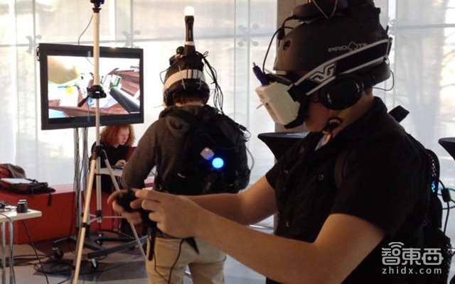 而Nathan Burba和James Iiliff等人也用现有能够买到的包括PS MOVE的摄像头与控制器、头戴式显示器、背包电脑、Sixense 有线感应手柄等部件做出了一套VR原形设备。