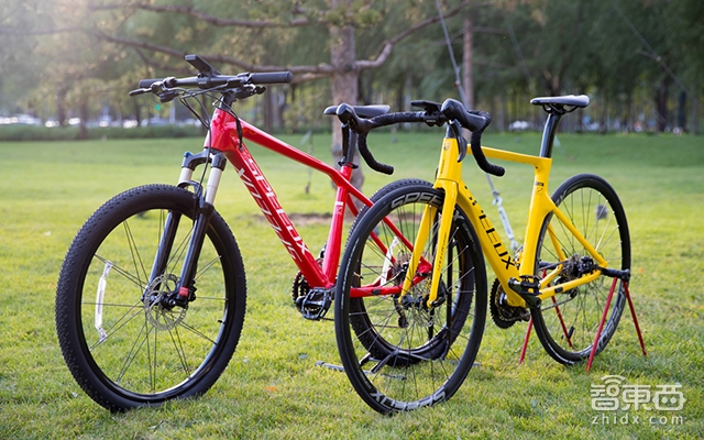 黄色为Leopard AL公路自行车,红色为Mustang AL山地型自行车