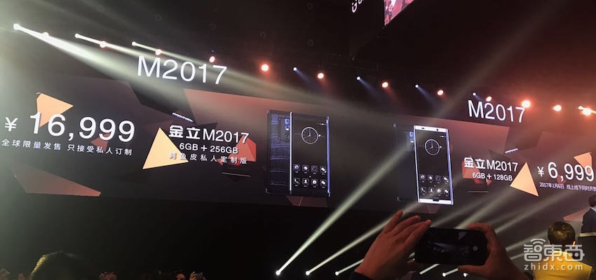 智东西12月26日海口报道,成立15周年的金立手机今天在海口冯小刚电影公社推出了旗下年度旗舰手机M2017,普通版售价6999元,最高售价的鳄鱼皮私人定制版售价高达16999元,这也是金立成立15周年手机产品的价格新高度。