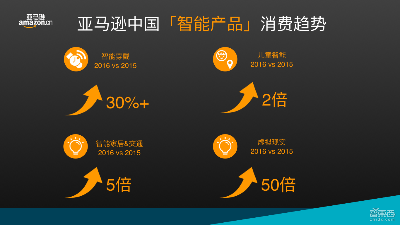 独家发布!亚马逊中国2016智能产品消费数据及2017年趋势预测。下面是报告源文件请在智东西(公众号:zhidxcom)回复关键词“亚马逊创课”获取下载地址。