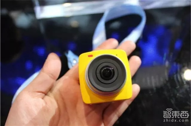 中兴展出的这款运动相机型号为MDM9215,整体呈骚黄色,外观看起来方方正正小巧可爱,目测不会比小蚁运动相机大。