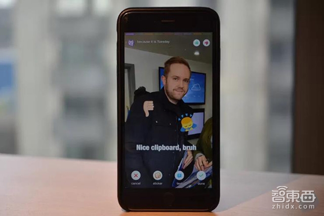 此外,该APP还可以根据拍照的时间或地点等因素,来提示相关的字幕与贴纸。例如,它可能会在周一的照片上推荐周一笑话之类的文字。