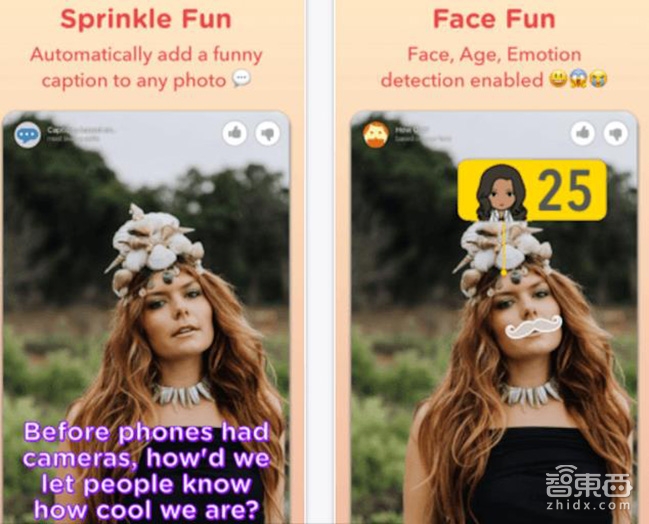 Sprinkles主要面向青少年用户,可为其提供各式各样的传统照片修饰工具,如贴纸、表情符号和字幕。这主要是通过利用微软的机器学习和人工智能来进行的,如进行面部识别,根据年龄和情感来推荐照片主题,推测照片人物与某名人的相似度、推荐照片主题等等。