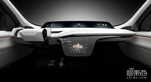 Portal拥有三大块屏幕。一块是大号的仪表盘,一块儿是中控大屏,另一块则是车顶悬挂的一个后排屏幕。其仪表盘大屏可以分为三个部分,左边显示常见的仪表信息,中间显示的是车辆的360度环绕影像,而最右边则用来显示车内的乘客信息。中间大屏显示的则是车辆设置、导航、档位、空调等信息。