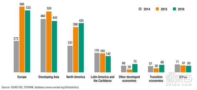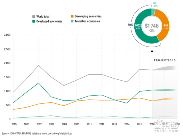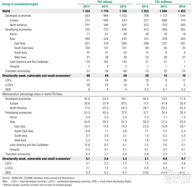 换言之,发达经济体在全球FDI所占的份额越来越大,2016年占比达59%。