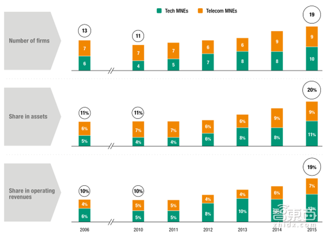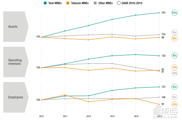 * 2010–2016年百强跨国公司技术和通信技术发展示意