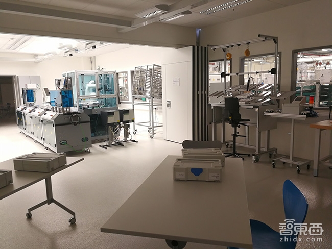 在参观的过程中,智东西注意到,整个工厂的灯光设置颜色很特别。问其奥妙得知,这个灯光完是按照自然化的方式设计,可以帮夜晚的工人获得类似阳光的光线。