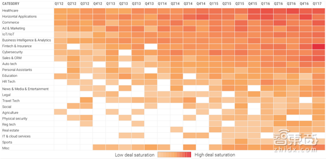 除了上述热门创业方向之外,CB Insights还在报告中指出即将抬头的AI相关创业项目:游戏、监管科技(REG Tech,金融科技的分支)、专业自动化(如论文评分、行程规划、法务)等,可以看到这几大项目的交易热度近年来显著上升,一方面是相关市场的急速拓展,另一方面,人工智能在专业、特定方向上的技术应用也趋于成熟。