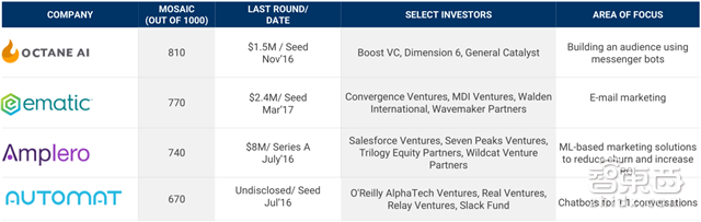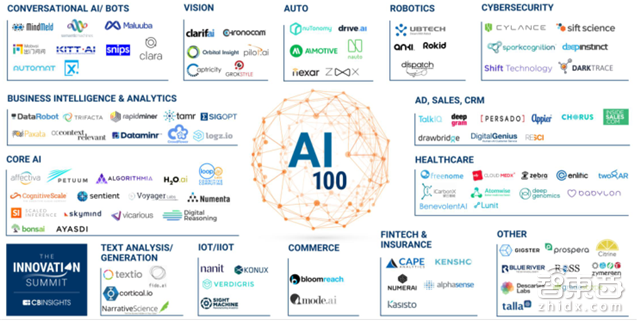 强力的资本介入使得AI成为创业的关键领域,对此,CB Insights整理出了百强AI创企,覆盖聊天程序、视觉、汽车、机器人、网络安全、商务智能与分析、广告与销售与客户管理、核心/前沿技术、医疗、文本分析、物联网、消费、金融与保险等领域。